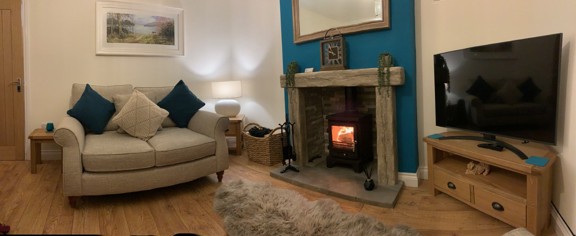 The cottage offers a lovely, welcoming living space centered around a cosy log burner, perfect for relaxing after a day exploring the Lake District. The fully equipped kitchen provides all amenities needed to prepare a comforting home-cooked meal, whether it's a hearty breakfast or a relaxed evening dinner.