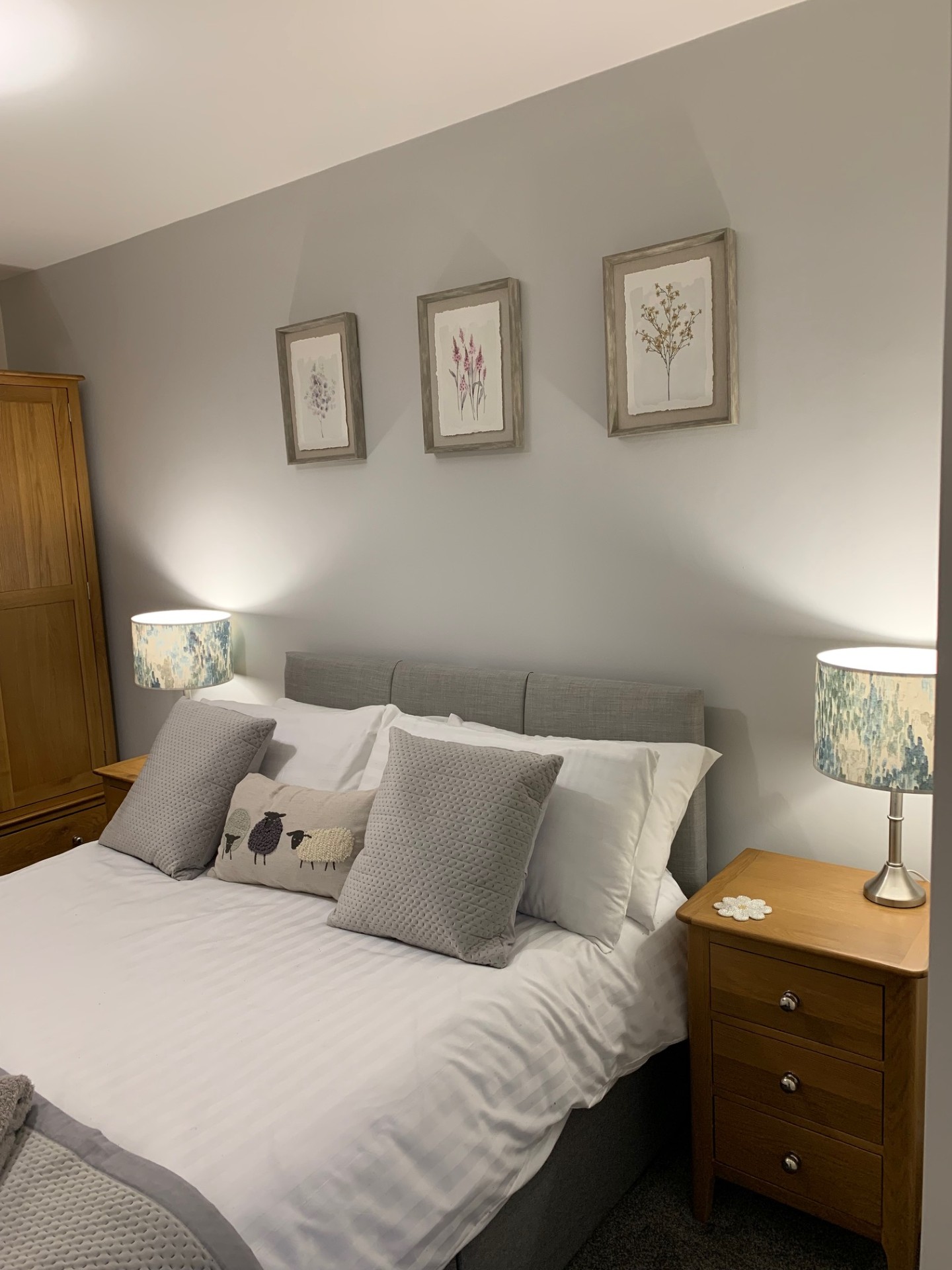 Bedroom 2 - Double bed, wardrobe, 2 bedside cabinets, hairdryer, bed linen, towels